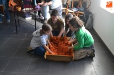 A la hora de la realización de los distintos pasos, los niños fueron parte activa pelando ajos, pesando el pimentón y la sal, y mezclando todo ello con la propia carne del cerdo. A continuación, lavaron y ataron las tripas ?con ayuda de una experta- para llegar a la parte más esperada, el enfusado, momento en el que los niños vieron el chorizo tal y como lo encuentran habitualmente en sus casas.
