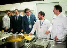 El cocinero salmantino Fran Vicente, tercero en la última edición del concurso televisivo Top Chef, ha encabezado hoy la expedición de Salamanca junto a los jefes de cocina de los dieciséis restaurantes salmantinos participantes: El Alquimista, Casa Paca, La Cocina de Toño, El Corrillo, Don Fadrique, Don Mauro, Doze, Hoja 21, Lilicook Gastrobar, Lis, El Mesón de Gonzalo, Montero Casa de Comidas, Pucela, Las Tapas de Gonzalo, La Tentazión y Vida & Comida.