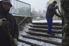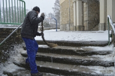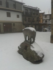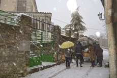 En las imágenes, la nevada caída en La Alberca, donde los vecinos han tenido que limpiar los accesos al colegio y otros centros públicos.