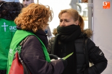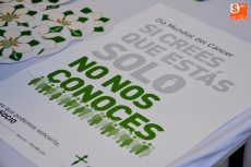 La lucha contra el cáncer y la solidaridad hacia los afectados por la enfermedad. Es el objetivo del Día Mundial Contra el Cáncer que se celebra hoy con el lema 'Si crees que estás solo no nos conoces'. La AECC en Salamanca, durante toda la jornada, mantiene mesas informativas con el fin de hacer llegar hasta los enfermos mensajes de apoyo y solidaridad. Pilar Carreto, psicóloga de la asociación, afirma que en esta jornada se quiere acercar la AECC a la sociedad. "Queremos darnos a conocer más y que a los enfermos le lleguen mensajes de apoyo" que los ciudadanos pueden dejar en las mesas.
