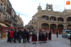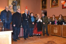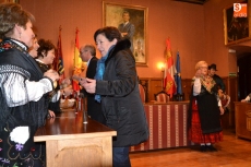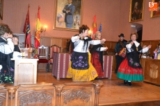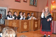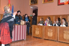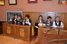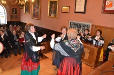 Tras desarrollar unos primeros bailes en la Plaza, y como hacía frío, subieron a la Casa Consistorial, aunque todavía faltaba un cuarto de hora para la hora fijada para que fueran recibidas por el alcalde Javier Iglesias. Para hacer tiempo, hubo más bailes y muchas risas en el Salón de Plenos, todo ello dirigido por la habitual alcaldesa, Rosario Pérez.
