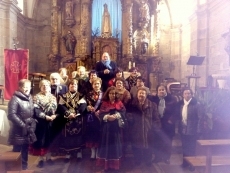 Tras el primer acto oficial, el grupo de águedas se trasladó a la iglesia parroquial de Santiago Apóstol para asistir a la misa oficiada por el párroco José Sánchez y, posteriormente, sacar a la Santa en procesión en honor, para continuar así este día en el que las mujeres son las principales protagonistas.