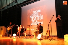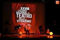 Baleo, grupo de música tradicional identificado con la comarca de Vitigudino, recibió esta tarde del sábado los primeros aplausos en la vigésimo octava edición del Certamen Nacional de Teatro 'Villa de Vitigudino', actuación que se enmarcaba en el acto inaugural de este evento en el que participarán seis compañías de teatro procedentes de distintos lugares de España y que se desarrollará hasta el 28 de marzo.