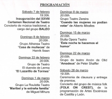 El domingo 1 de marzo el grupo La Roulotte Teatro (Burgos) representará Maribel y la extraña familia, y coincidiendo con el Día de la Mujer Trabajadora, Teatro Zereira (Segovia) representará el 8 de mayo Cuando las mujeres no podían votar. El 15 de marzo llegará el turno de Stulta Opera Teatro (Valencia) y su Esta noche te hacemos el humor, para cerrar el 22 de marzo con la obra Amadeus y que pondrá en escena el grupo vallisoletano Arcón de Olid.