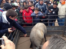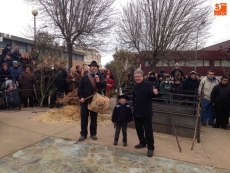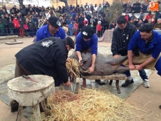 La jornada continuó con el sacrificio del marrano a cargo de los expertos matarifes. Primero, lo sangraron, y después procedieron a su chamuscado. Al mismo tiempo, las águedas se encargaron de repartir dulces y aguardiente para combatir el frío entre el público.