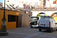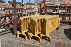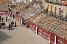 En lo que se refiere a la plaza de toros instalada en la Plaza Mayor, la instalación ya está completa, después de que a primera hora de la mañana se procediese a echar y extender la arena que cubrirá el suelo de la Plaza durante casi una semana.