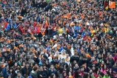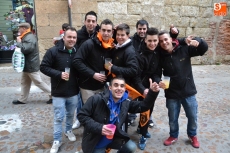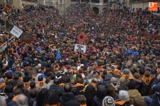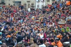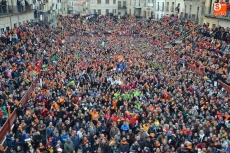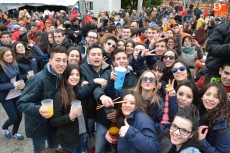 Con mayor adelanto que en años anteriores, miles de personas fueron subiendo hasta la Plaza Mayor. Los jóvenes optaron como es habitual por arrancar su recorrido en la rotonda del Árbol Gordo, donde bailaron y cantaron al ritmo de los miembros de las charangas que un año más se sumaron al evento. En esta ocasión, los miembros de las charangas también subieron con más antelación a la Plaza.