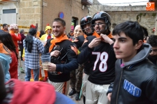 Como es habitual, los miembros de la entidad promotora del evento, la Asociación Cultural Carnavaldeltoro.es, se reunieron en el Registro en la sobremesa para preparar los clásicos pañuelos farinatos, y también unas trompetas que hicieron mucho ruido a lo largo de la tarde.