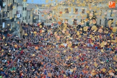 Con mucha puntualidad, se llevó a cabo la cuenta atrás hasta oír por primera vez la Campana, estallando la Plaza Mayor de júbilo a la par que caía confeti gigante desde la balconada de la Casa Consistorial.