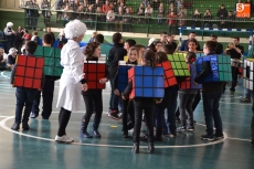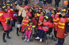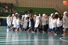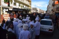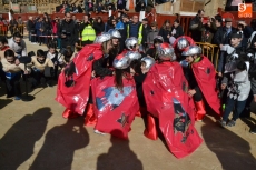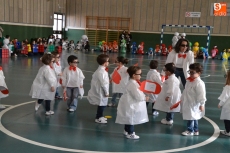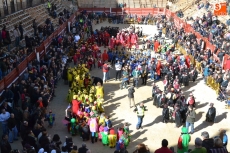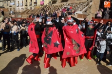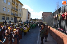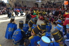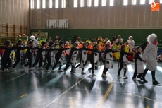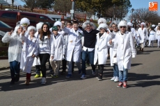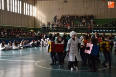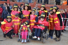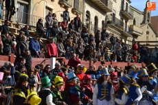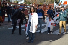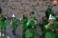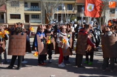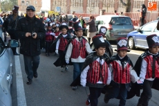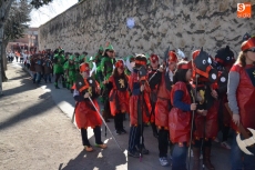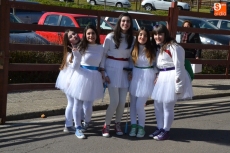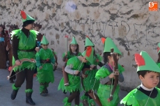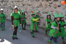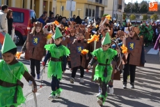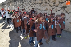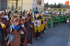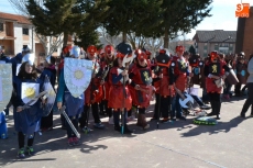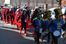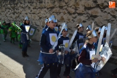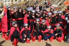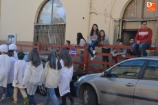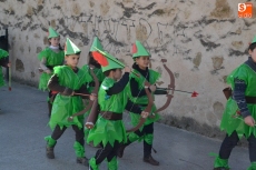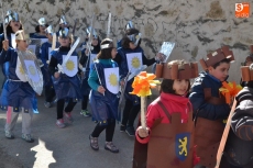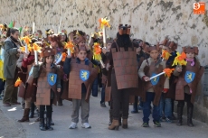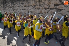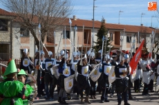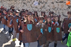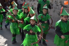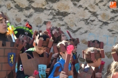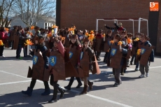 Encabezados por la Rondalla del Centro de Día de Personas Mayores, los alumnos, junto a sus profesores, hicieron un recorrido por el Paseo de Carmelitas, luciendo sus disfraces de torres, caballeros, arqueros, bufones o espadachines. Tanto en el interior del colegio, como en el exterior, algunos de los grupos realizaron formaciones 'de guerra'.