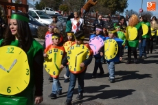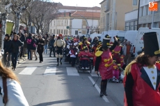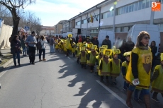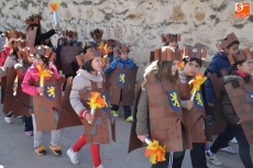 Los colegios de Ciudad Rodrigo cumplieron en la mañana del Viernes del Carnaval con la tradición de desfilar por las calles mirobrigenses, llenándolas de colorido, y este año especialmente, de mucha música, ya que los pasacalles contaron con distintos acompañamientos musicales.