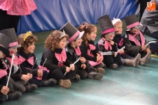Los primeros en salir a la calle fueron los alumnos del Colegio San Francisco, que este año recrearon el mundo del circo, cambiando incluso su nombre por el de 'San Francirco'. En una comitiva muy colorida, se pudo ver a leones, domadores de leones, majorettes, hombres-bala, payasos, magos, tiririteros, arlequines, maestros de ceremonia o forzudos (cada nivel educativo iba de una temática).