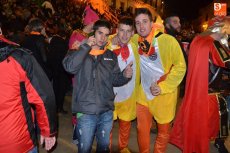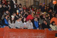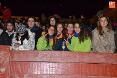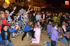 La larguísima jornada de Viernes de Carnaval, que arrancó por la mañana con los desfiles de los colegios mirobrigenses, concluyó pasada la medianoche con la primera capea nocturna del Carnaval 2015, que especialmente dejó patente la falta que hacía la música de las charangas en estas citas.