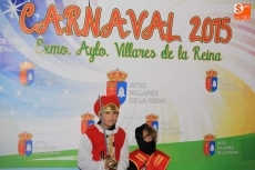 Disfraces para celebrar el Carnaval y sumarse a la fiesta. Villares de la Reina tenía este sábado una cita con la diversión y, en especial, con el baile de Carnaval y el concurso de disfraces, con premios para los más originales. Durante todo el baile, los asistentes han podido pasar por el ptotocall.