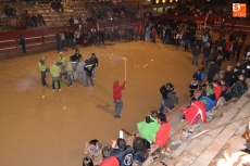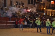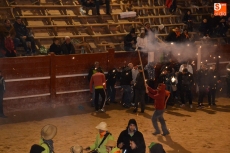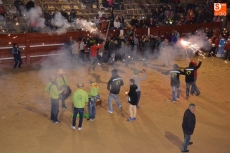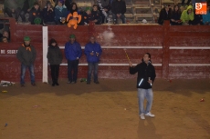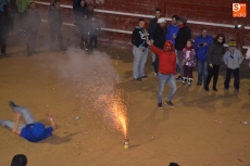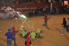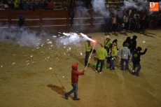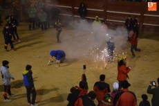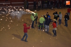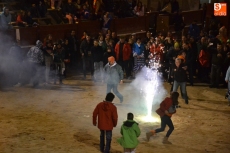 El coso taurino de la Plaza Mayor de Ciudad Rodrigo fue escenario en la noche del domingo (a partir de las 22.00 horas) del espectáculo pirotécnico de baja intensidad que formaba parte de las condiciones ofrecidas por la Charanga A Riure para tocar durante los días del Carnaval 2015.