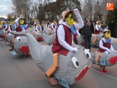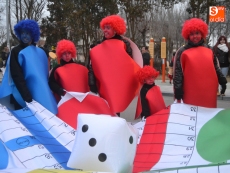 El intenso frío no pudo con las ganas de carnaval y un año mas las calles de Peñaranda se llenaron de animación para vivir el ya clásico desfile del Martes de Carnaval. Desde el pabellón municipal Miguel Ángel Jiménez Barcala y hasta las plazas, con la compañía de la dulzaina Alborada y la charanga Dale Caña al Asunto, grandes y pequeños disfrutaron exhibiendo las creaciones que han estado preparando durante meses con mimo para esta gran cita. Una fiesta que era seguida por cientos de vecinos durante todo el recorrido y que fue analizada por un jurado que se encargaba de examinar las 11 propuestas presentadas entre las dos categorías participantes para elegir a los ganadores del concurso de disfraces de este año.