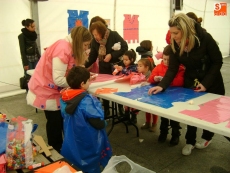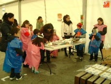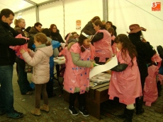 La carpa municipal de la Plaza Mayor acogió por la mañana una serie de talleres medievales, en los que los niños y niñas pudieron crear su propio disfraz de caballeros o damas, con sus coronas, espadas y escudos.