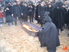 El cortejo fúnebre partía desde el Ayuntamiento, recorriendo las plazas de Constitución y España, para finalizar frente al templete donde, tras una sentida e irónica oración, comenzaba la quema del féretro. Un acto que fue seguido por decenas de vecinos, animados durante todo el acto por la música de la dulzaina Alborada.