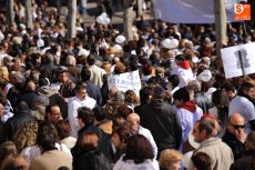 Bajo el lema 'La Sanidad somos todos. Aquí no sobra nadie, aquí falta gente', miles de personas se manifestaron este domingo en Salamanca para exigir a la Junta de Castilla y León que evite el progresivo deterioro del funcionamiento orgánico y las diferentes áreas del complejo hospitalario de la capital.