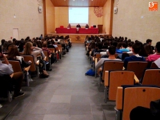 Los alumnos llenaron el Auditorio Juan Pablo II para escuchar la charla sobre el apego de Purificación Sierra (GALERÍA DE FOTOS)