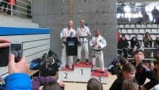 El primero en salir al tatami fue el Maestro Eduardo Mario como cinturón negro y logrando un tercer puesto tras una lucha difícil. El segundo en salir a mostrar su valía fue el cinturón marrón Gutenberg Chaves y tras una pelea bien pensada consiguió ponerse en lo más alto del pódium.