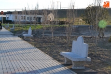 A la par que comenzaban las obras de construcción del campo, en la mañana del viernes se estuvieron colocando bancos en la avenida de acceso a la zona deportiva, que se unen al arbolado que ya se colocó hace unas cuantas semanas.