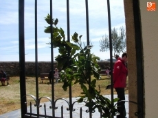 Vecinos de todas las edades acudieron hasta la iglesia de esta localidad para participar en la fiesta del Domingo de Ramos. Antes de entrar en el templo, el párroco procedió a la bendición de los ramos de laureles.