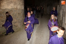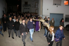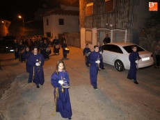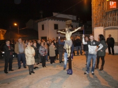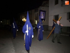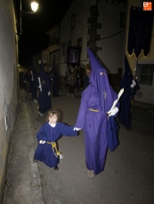 La procesión partió de la iglesia para recorrer todas las calles del municipio. Precedidos por los miembros de la cofradía ataviados con sus hábitos y capirotes, los vecinos rezaron las distintas estaciones del Vía Crucis durante el recorrido.