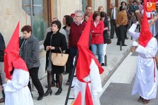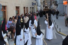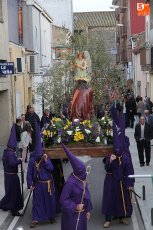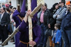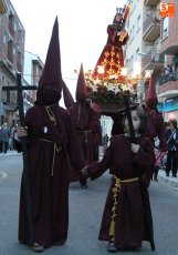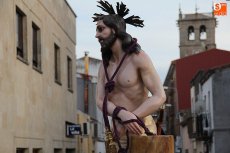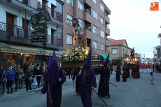 Tras esta Imagen, en el recorrido aparecía 'El Amarrao', donde Jesús ?atado de manos? recibe latigazos de los soldados romanos. De camino al Calvario, Jesús aparece vestido de Nazareno portando la cruz al hombro y acompañado de capirotes morados que anuncian su llegada a la Cruz, momento que queda representado en el paso del Cristo de la Agonía, ya con sus brazos y pies clavados al madero. Y finalmente, tras el discurrir de cientos de fieles, la Imagen de la Dolorosa cerrando la procesión y con el reflejo en su rostro del recuerdo del hijo de Dios yaciente.