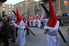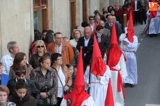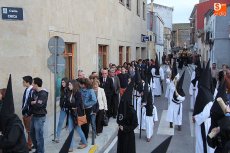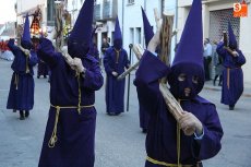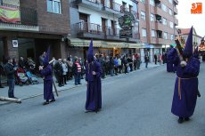 Con el sol a punto de desaparecer, pero con una excelente temperatura, la procesión de La Pasión, segundo de los actos procesionales de la Semana Santa vitigudinense, arrancaba con cada una de las imágenes de Cristo que simbolizan su camino a la Cruz, comenzando con la aparición del ángel en el Huerto de los Olivos y todo bajo el sonido de tambores y cornetas de la Asociación Musical 'Preciosa Sangre' de Peñaranda de Bracamonte, que un año más realizó una extraordinaria interpretación de las marchas procesionales.