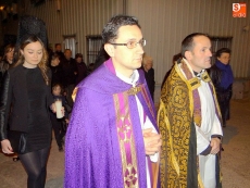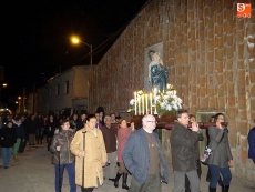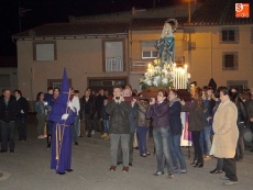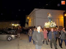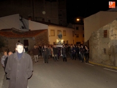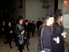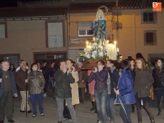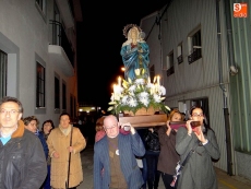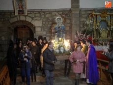 Detrás, los vecinos se turnaban por llevar las andas de la Virgen alumbrada por las velas. A continuación, el párroco junto a un grupo de mujeres vestidas de riguroso luto y ataviadas con mantillas negras, llevaban el peso de las oraciones.