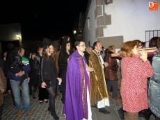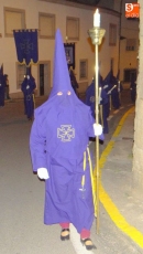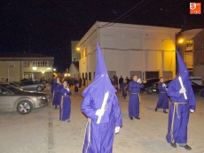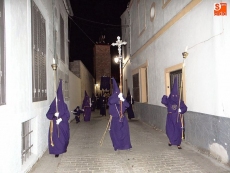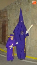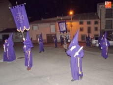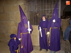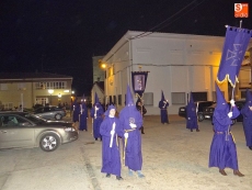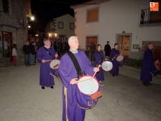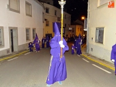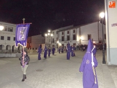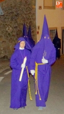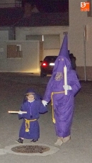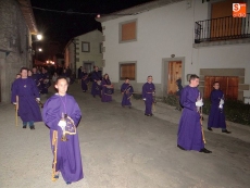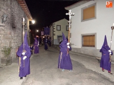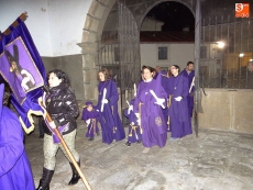 Sobre las diez y media de la noche, partían desde la iglesia los vecinos de Ledrada para cumplir con uno de los actos más solemnes de la Semana Santa. Precediendo a la comitiva, caminaron los miembros de la Cofradía de Jesús el Nazareno, luciendo sus hábitos de este color.