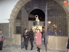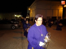 Los feligreses de Ledrada participaron esta madrugada en la Procesión del Silencio. Un acto de acompañamiento a la figura de la Virgen por las calles de este municipio, roto solo por el redoble del tambor y el sonido de las cornetas.