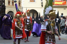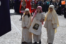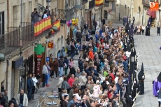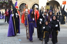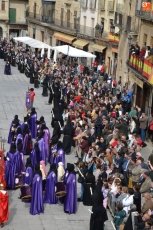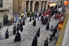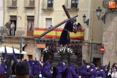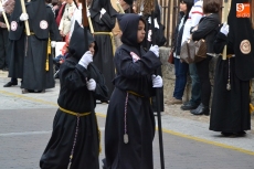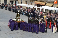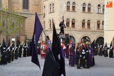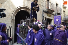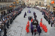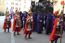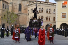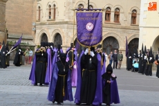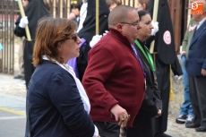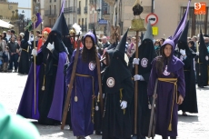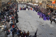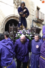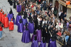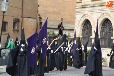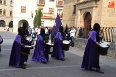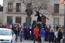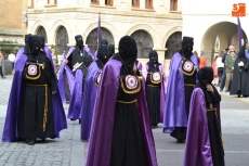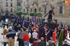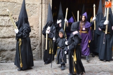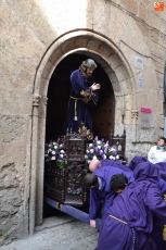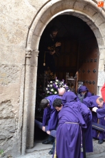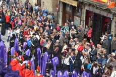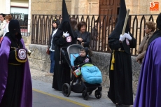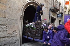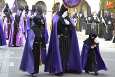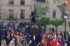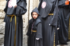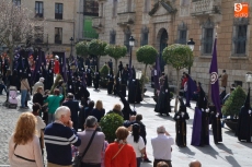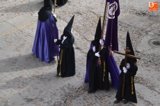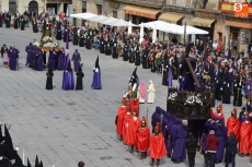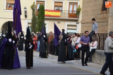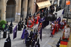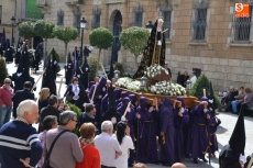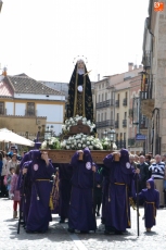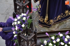 Allí se encontró con la Virgen de La Dolorosa, que había arrancado su trayecto en la Santa Iglesia Catedral, donde estaba desde el pasado Viernes. Esta parte de la procesión transcurrió por la Plazuela de San Salvador, Díez Taravilla y La Colada.