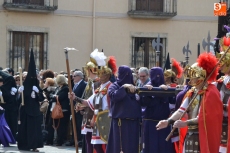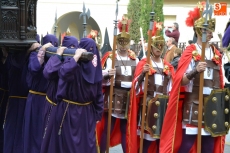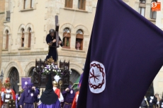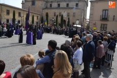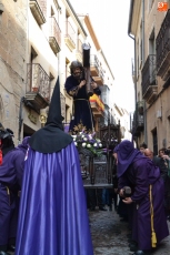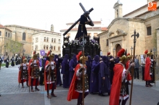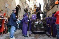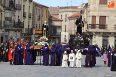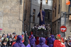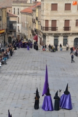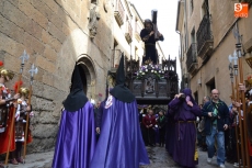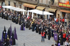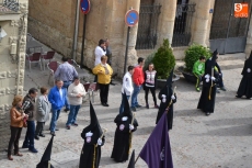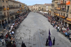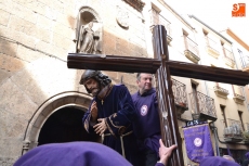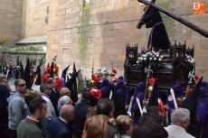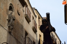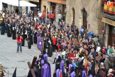 Ciudad Rodrigo abrió la jornada del Viernes Santo -día central de la Semana Santa Mirobrigense con 3 desfiles- con la habitual procesión del Encuentro organizada por la Cofradía de Jesús Nazareno, que como en los días anteriores fue seguida por cientos de mirobrigenses y turistas con un gran respeto.
