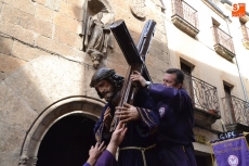Tras la intervención de Manuel Peláez, la procesión continuó por la calle Madrid, Plazuela del Conde, calle Cáceres y la Avenida de Yurramendi para alcanzar la Catedral. En este tramo, fue en primer lugar la imagen de Jesús Nazareno ?escoltada en todo momento por soldados-, a continuación la Banda de Cornetas y Tambores de la Cofradía, y como cierre la imagen de La Dolorosa.