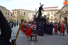 A las puertas de la Iglesia se bajó al suelo la imagen de Jesús Nazareno para colocarle la cruz, ya que no puede salir con ella por cuestiones de altura. Jesús Nazareno tomó la Plazuela Cristóbal de Castillejo, para seguir por Campo del Pozo, Enrique Zarandieta y Rúa del Sol hasta la Plaza Mayor.