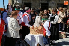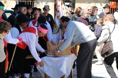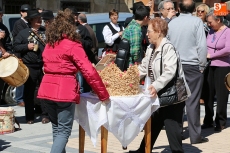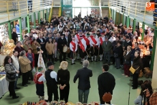 [Img #273054]Concluido el primer gran momento de la jornada, la comitiva se desplazaba hasta la Plaza de España para comenzar el homenaje a 'Afro'. En primer lugar, el homenajeado entonaba varios temas de La Ribera, entre ellos los paleos y la rosca de quintos, danzas autóctonas de esta comarca y que fueron interpretadas en el baile, la primera, por el grupo de paleos, y, la segunda, por María García Calvo, Mª Ángeles Hernández Andrés, Ramón Guarido y Manuel Pérez 'Pernales' en torno a una gran rosca de almendras de ocho kilos de peso.