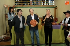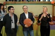 [Img #273814]Con el Mercado de Abastos abarrotado de público, Sayagués recibía de manos de María Teresa Marcos un gran botón charro realizado en barro por el maestro alfarero vitigudinense Ceferino Serrano, pieza que le identificaba como Alfarero de Honor de esta muestra que concluye este sábado y que ha contado con una docena de alfareros y artesanos ceramistas procedentes de distintos puntos de España y Portugal.