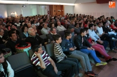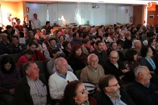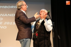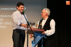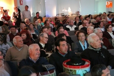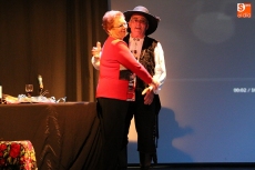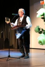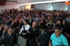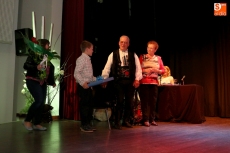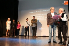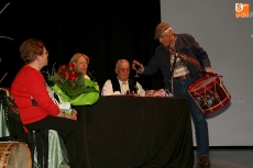 [Img #273467]Finalizado el capítulo de actuaciones, tras la comida más de 200 personas se congregaban en el salón de actos del Centro cultural para rendir su particular homenaje a Afrodisio Hernández. A preguntas de María Teresa Marcos, Afro fue relatando su historia como tamborilero, para concluir dejando claro que "nunca he pretendido ser el mejor sino defender lo poco que nos quedaba en el pueblo", palabras en alusión a su participación en la conservación de bailes como los paleos, la rosca de quintos o la bandera.