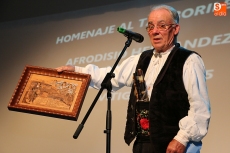 Tras la proyección de un audiovisual con imágenes que narraban la vida del homenajeado, Afro recibió de sus nietos un cuadro en recuerdo de este día; como también lo hicieron los integrantes del grupo de paleos de Vilvestre representados por Nacho García Calvo, que entregaba al que ha sido su maestro una placa de cristal en agradecimiento a su labor en la conservación del folclore tradicional.