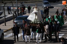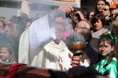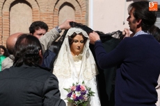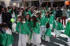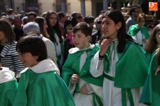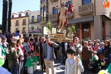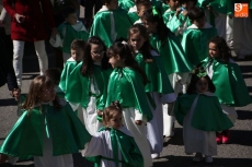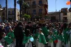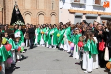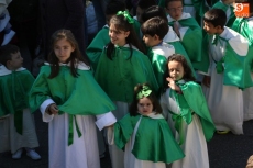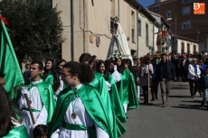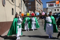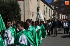 El Domingo de Resurrección en Alba de Tormes es sinónimo de colorido, alegría, infancia y también del 'Encuentro del paso de Jesús Resucitado y la Virgen de la Alegría'. El encuentro se produjo como es habitual en la Plaza Mayor y la alegría por la resurrección se trasladó por las calles de la localidad hasta llegar a San Pedro, donde se celebró la eucaristía. La Virgen abandonó el luto y el blanco de su manto lució más en un día festivo y al que quiso acompañar el buen tiempo.