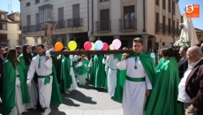 ALBA DE TORMES | La procesión de resurreción llena de alegría y colorido la Plaza Mayor y las calles de la localidad