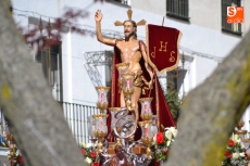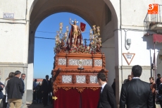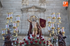 La comitiva, que este año presentaba importantes novedades, partía a las once en punto de la mañana desde la iglesia parroquial, desde la que Jesús Resucitado comenzaba su peregrinar, engalanado sobre su nuevo trono que era cargado por 35 costaleros llegados desde la capital charra. Tras un breve recorrido por las calles de la ciudad llegaban a la Plaza Nueva, que por primera vez en la historia presenciaba este clásico acto, para, posteriormente, encaminarse hacia la Plaza de la Constitución donde tuvo lugar el encuentro. Un recorrido que estuvo arropado por cofrades de la Preciosa Sangre, a los que precedían representantes de las cofradías del Santísimo Cristo del Humilladero y del Cristo de la Cama.