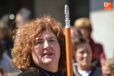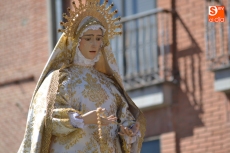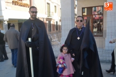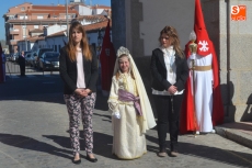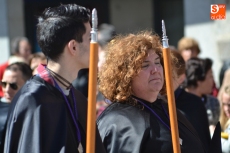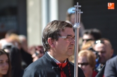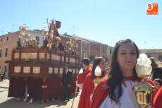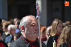 Un año más cientos de personas se han echado a las calles para vivir la procesión del Resucitado, con la que se cierra la Semana Santa en Peñaranda. Vecinos y visitantes se daban cita durante la mañana del domingo en la Plaza de la Constitución para asistir a uno de los momentos más especiales de la semana de pasión como es el encuentro entre Jesús Resucitado y Nuestra Señora de la Soledad, en el que un pequeño ataviado como el Arcángel San Miguel anuncia la resurrección y procede a desprender el manto de luto que hasta ese momento ha lucido la virgen como muestra de su dolor.