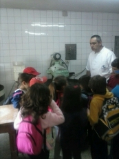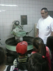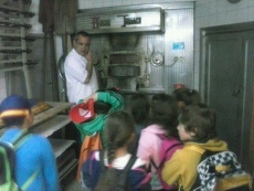 Una vez resuelto el almuerzo, continuaron con una visita a la farmacia del pueblo, saludaron a la cartera y estuvieron en la panadería de Bañobárez, donde les explicaron los nombres de las diferentes máquinas que se utilizan para realizar el pan, el proceso de elaboración y cocción hasta su venta. De aquí salieron especialmente contentos con su 'zocaño' de pan reciente en las manos.