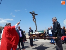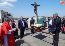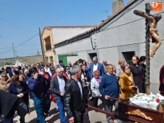 La parada central de la procesión tiene lugar en el cruce de caminos a la salida de Vega de Tirados, donde se inician sus campos y donde ha tenido lugar la tradicional bendición.