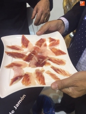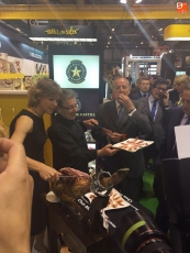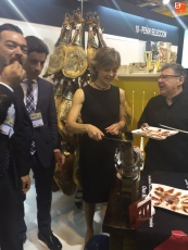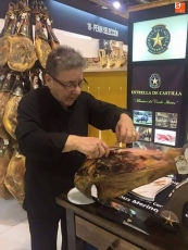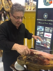 Cada una de estas empresas ha llevado su propio cortador, como Jesús Merino, que en esta ocasión participa con Estrella de Castilla y Virutas de Jamón. Todos los empresarios guijuelenses han ofrecido degustaciones de piezas de ibérico cortadas a mano, con el objetivo de ensalzar y mostrar los sabores del buen jamón ibérico curado. La ministra de Agricultura, Isabel García Tejerina, eOS: ncargada de inaugurar la feria, pasó por los estands de Guijuelo, y con la ayuda de Jesús Merino, se atrevió a cortar varias lonchas, y degustar los sabores de la dehesa.
