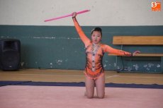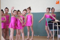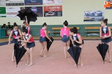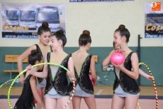 Entre las 200 gimnastas las había de todas las edades y categorias. Desde prebenjamines, benjamines, infantiles y cadetes a juveniles. Las deportistas mostraron lo mejor de sí tanto de forma individual como colectiva con grupos de más de seís integrantes. Cintas, aros, pelotas y cuerdas tocaron de forma artística el tapiz del pabellón. También hubo opción de utilizar objetos cotidianos, del día a día y llamó la atención que un grupo de Guijuelo utilizase paraguas.