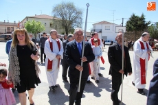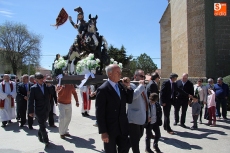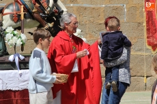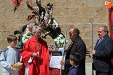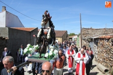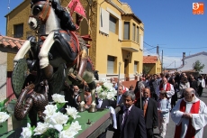 Oficiada por distintos sacerdotes del arciprestazgo del Abadengo, la misa daba paso a la procesión en Olmedo de Camaces y, así, San Jorge volvía a salir a lomos de su corcel para recorrer a hombros de sus vecinos las calles de la localidad. El cazador de dragones volvió a recibir la fidelidad de este pueblo en el día de su onomástica y bajo la guía de los mayordomos, varas que empuñaban miembros de la Corporación municipal con su alcalde Jesús Martín al frente.